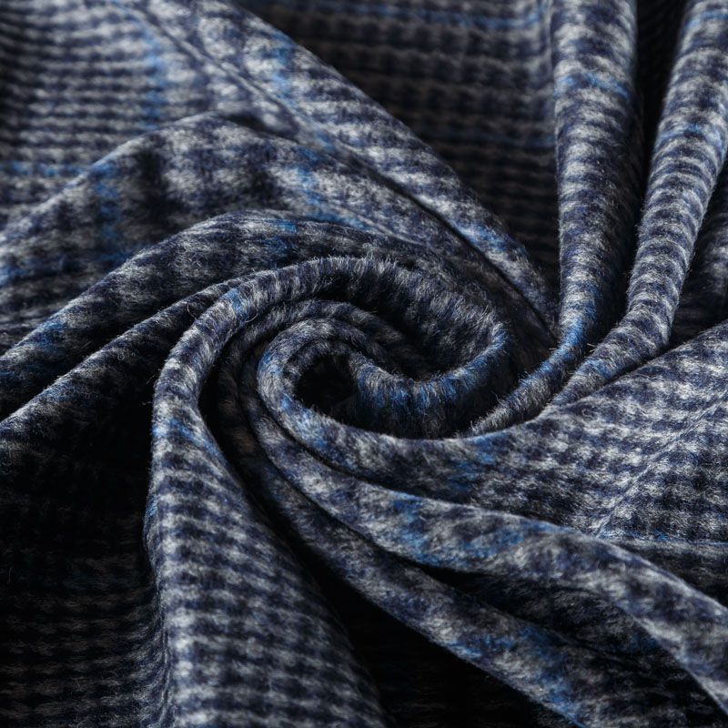 Итальянский плотный пальтовый кашемир темно-серого оттенка. Сочетание линий черного и синего цвета образуют эффектую клетку. Ткань великолепно держит форму, имеет мягкий направленный ворс, поверхность мягкая, шелковистая и приятная на ощупь. Идеально подойдет для пальто прямого кроя, кокона, бомбера, куртки, жилета.