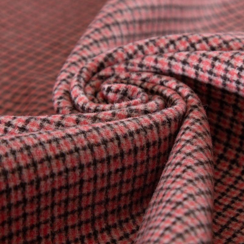 Ткань пальтовая двухсторонняя 040-16738 розовый/клетка