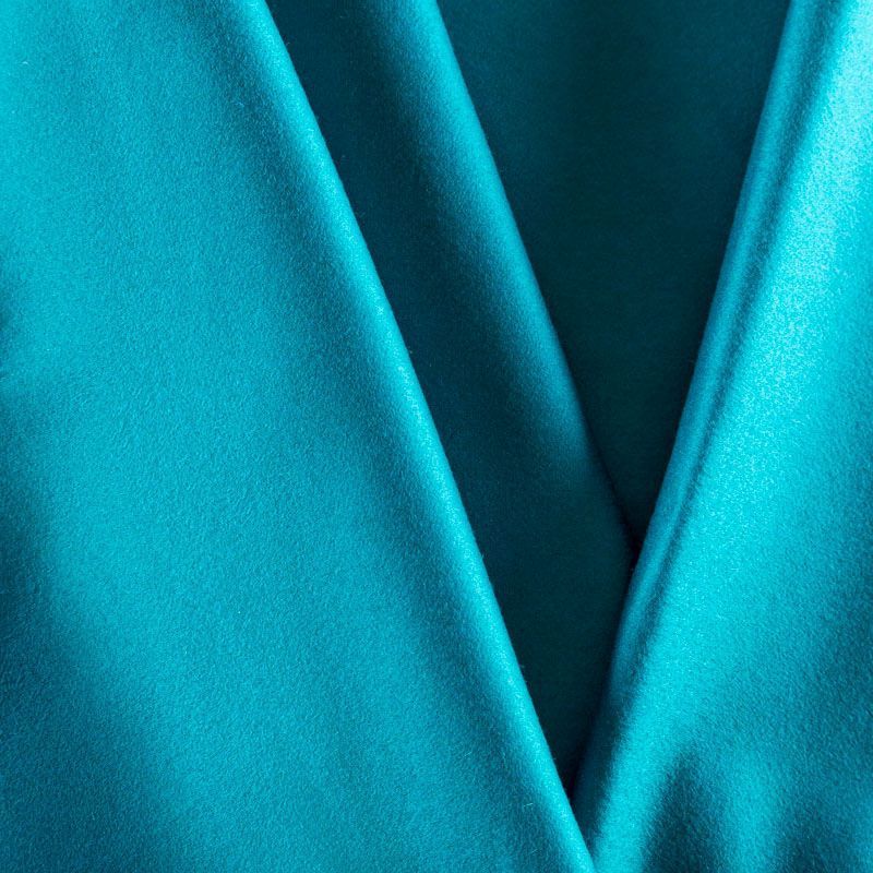 Пальтовая итальянская шерсть в бирюзовом оттенке. Ткань плотная, достаточно теплая, комфортная для одежды на сезон осень-зима. Полотно имеет короткий ворс. Мягкое и нежное на ощупь, не толстое и не тяжелое, хорошо держит форму. Прекрасно подойдет для пошива женских пальто, теплых костюмов, кейпов, мягких бомберов, жилетов и головных уборов.