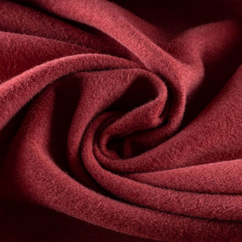 Плотная пальтовая ткань с коротеньким мягким ворсом на лицевой стороне и ровная на изнаночной. Она легко раскраивается, не скользит и не осыпается на срезах. Прекрасно подойдет для пошива женских пальто, теплых костюмов, кейпов, мягких бомберов, жилетов и головных уборов.