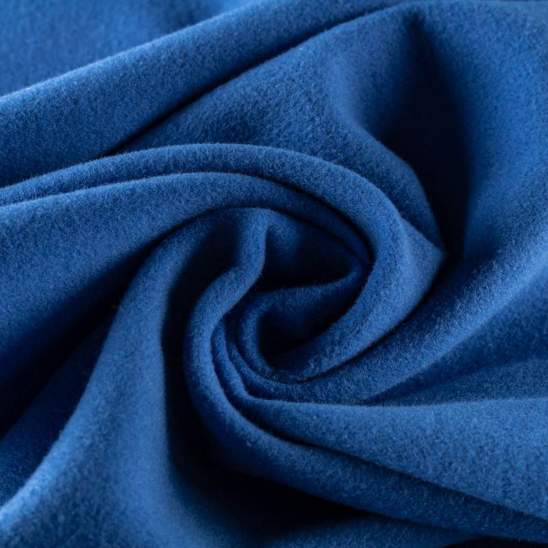 Плотная пальтовая ткань с коротеньким мягким ворсом на лицевой стороне и ровная на изнаночной. Она легко раскраивается, не скользит и не осыпается на срезах. Прекрасно подойдет для пошива женских пальто, теплых костюмов, кейпов, мягких бомберов, жилетов и головных уборов.