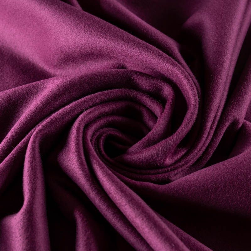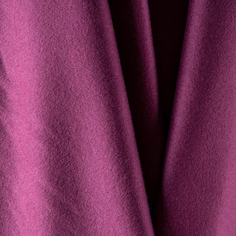 Пальтовая итальянская шерсть в пурпурном оттенке. Ткань плотная, достаточно теплая, комфортная для одежды на сезон осень-зима. Полотно имеет короткий ворс. Мягкое и нежное на ощупь, не толстое и не тяжелое, хорошо держит форму. Прекрасно подойдет для пошива женских пальто, теплых костюмов, кейпов, мягких бомберов, жилетов и головных уборов.