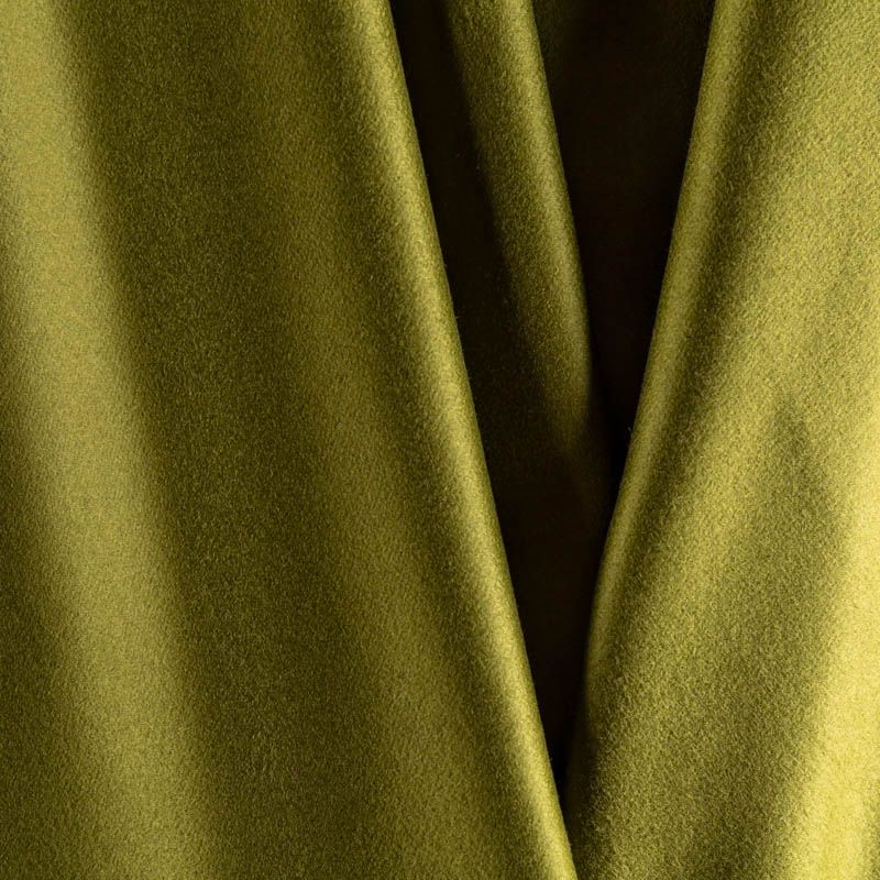 Пальтовая итальянская шерсть с кашемиром в зеленом оттенке. Ткань плотная, достаточно теплая, комфортная для одежды на сезон осень-зима. Полотно имеет короткий ворс. Мягкое и нежное на ощупь, не толстое и не тяжелое, хорошо держит форму. Прекрасно подойдет для пошива женских пальто, теплых костюмов, кейпов, мягких бомберов, жилетов и головных уборов.
