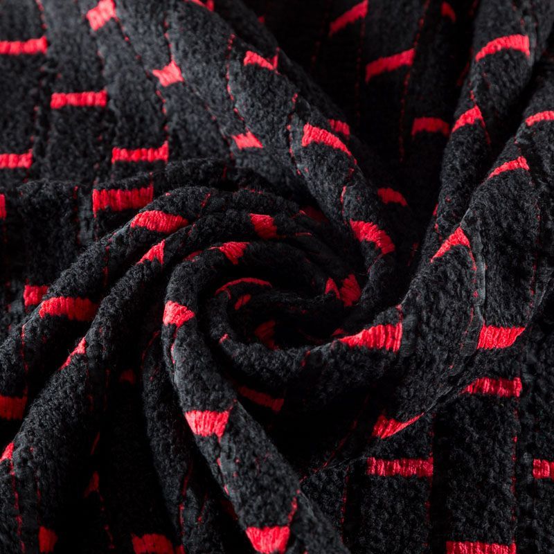 Оригинальная итальянская пальтовая 2-х сторонняя ткань в красно-черной гамме с жаккардовым геометрическим узором. Ткань плотная, достаточно теплая, комфортная для одежды на сезон осень-зима. Полотно мягкое, не тяжелое, хорошо держит форму. Прекрасно подойдет для пошива женских пальто, теплых костюмов, кейпов, мягких бомберов, жилетов и головных уборов.