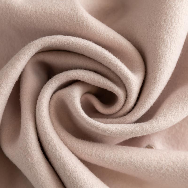 Пальтовая шерсть с кашемиром в нежно-розовом оттенке. Ткань плотная, очень теплая, отлично подойдет для осенней и зимней верхней одежды. Износостойкая, натуральная, не колется и очень приятная к телу. Подойдет для пошива пальто, теплых костюмов, жакетов, бомберов, жилетов.