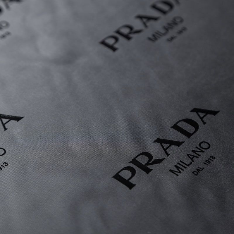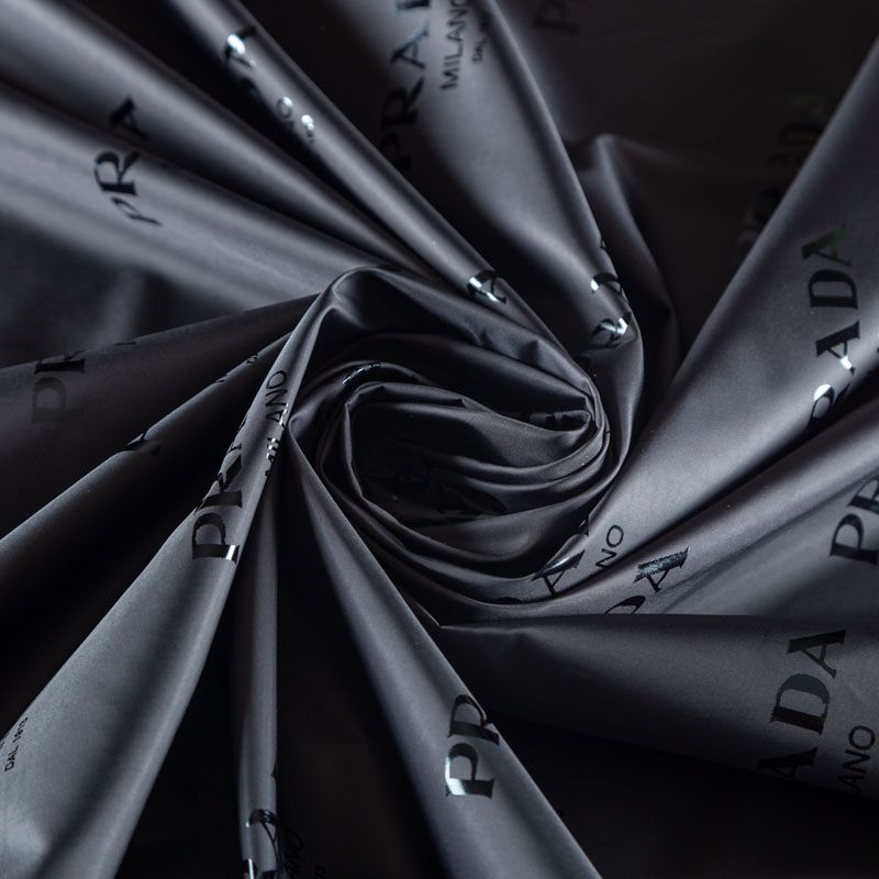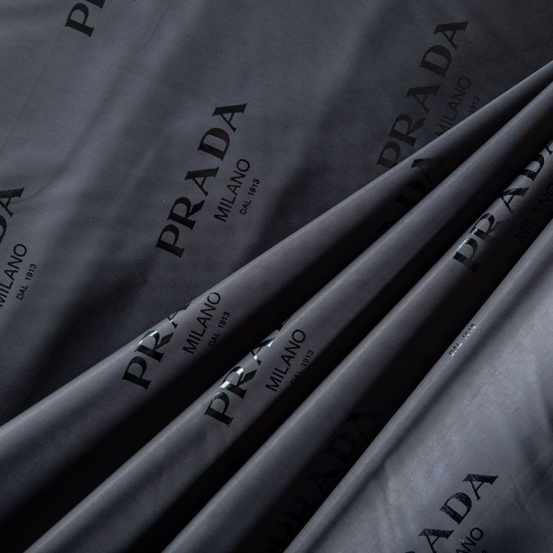 Итальянская мягкая, нешуршащая плащевая ткань черного цвета с глитерным принтом лого известного бренда. Ткань легкая, пластичная, приятная на ощупь, хорошо драпируется. Поверхность матовая, ровная. Подойдет для пошива парки, куртки на подкладе, плаща, ветровки, спортивных костюмов, одежды для домашних питомцев.