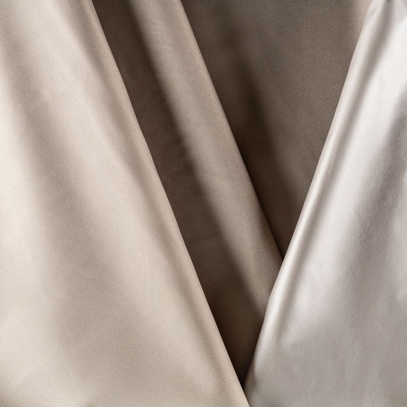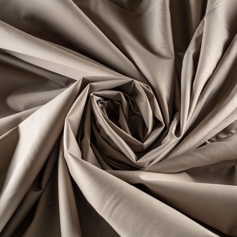 Поверхность ровная, плотная, однородная. Ткань легкая, гладкая, пластичная, хорошо держит форму, с водооталкивающей пропиткой. Подходит для изготовления  плащей, курток, ветровок, бомберов.