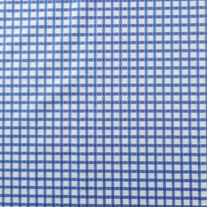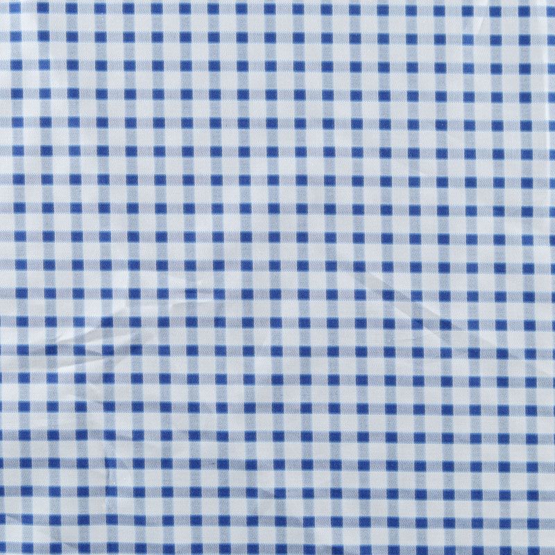 Итальянский плательно-рубашечный смесовый хлопок в синюю клеточку. Ткань мягкая, лёгкая, непрозрачная, пластичная и приятная к телу, хорошо драпируется, имеет гладкую матовую поверхность и сатиновое плетение. Прекрасно подойдет как для пошива платья-рубашки, сарафана, платьев различных фасонов, туники, топа, летнего костюма, комбинезона, детской и мужской одежды.
