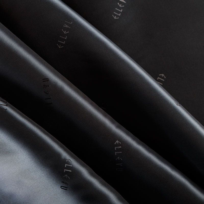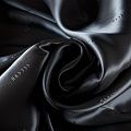 Итальянская подкладочная ткань из вискозы черного оттенка с редким жаккардовым узором и красивым лоском. Полотно средней плотности, легкое, не просвечивает, хорошо скользит, не тянется. Подойдет для изготовления таких изделий, как пальто, костюмы, куртка, шуба, платье, жакет.