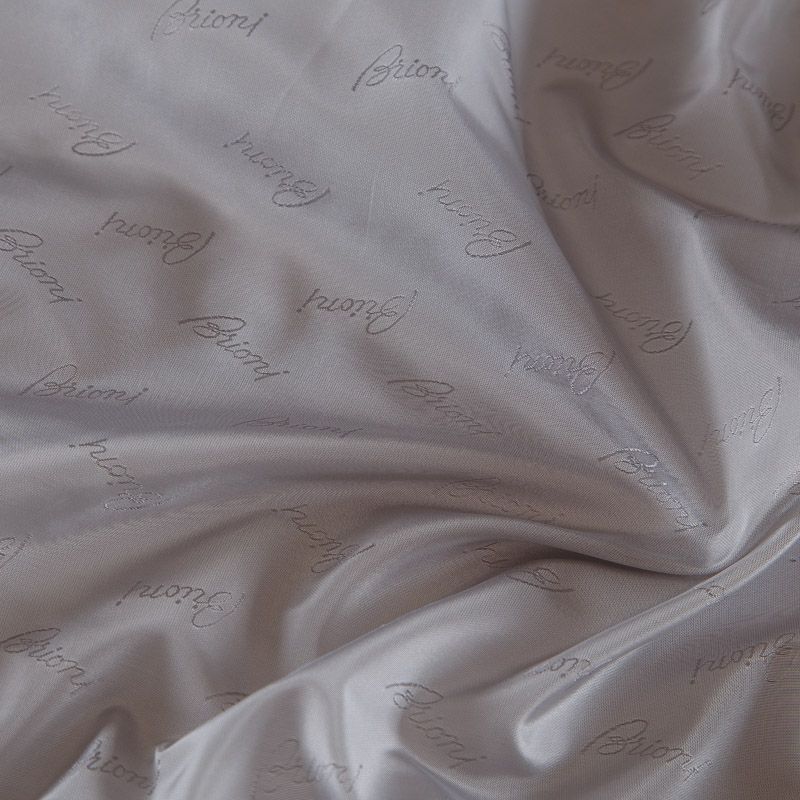 Итальянская подкладочная вискоза из коллекции Brioni. Ткань имеет очень плотное сатиновое плетение, по всей поверхности расположены лого бренда. Подойдет в качестве подклада не только для изделий костюмной группы, но и для верхней одежды: пальто, бомбер, парка, куртка, шуба.