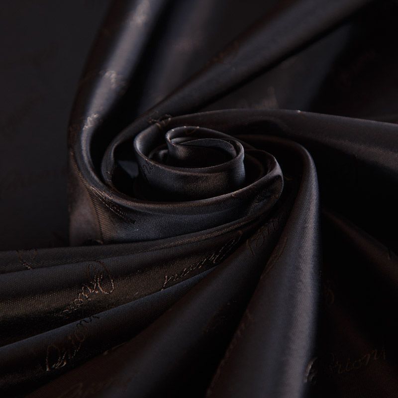 Итальянская подкладочная вискоза из коллекции Brioni. Ткань имеет очень плотное сатиновое плетение, по всей поверхности расположены лого бренда. Подойдет в качестве подклада не только для изделий костюмной группы, но и для верхней одежды: пальто, бомбер, парка, куртка, шуба.