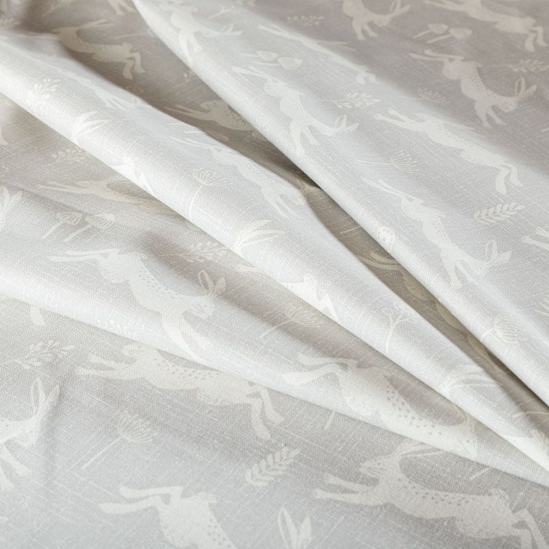 Английская ткань из коллекции Джамп известного бренда Fryett's со сказочным дизайном с изображением прыгающих зайцев на текстурированной хлопковой основе. Ткань средней плотности, прекрасно держит форму, драпируется в устойчивые складки. Подойдет для плотных штор, покрывал, подушек, скатертей, салфеток и других элементов текстильного интерьера.