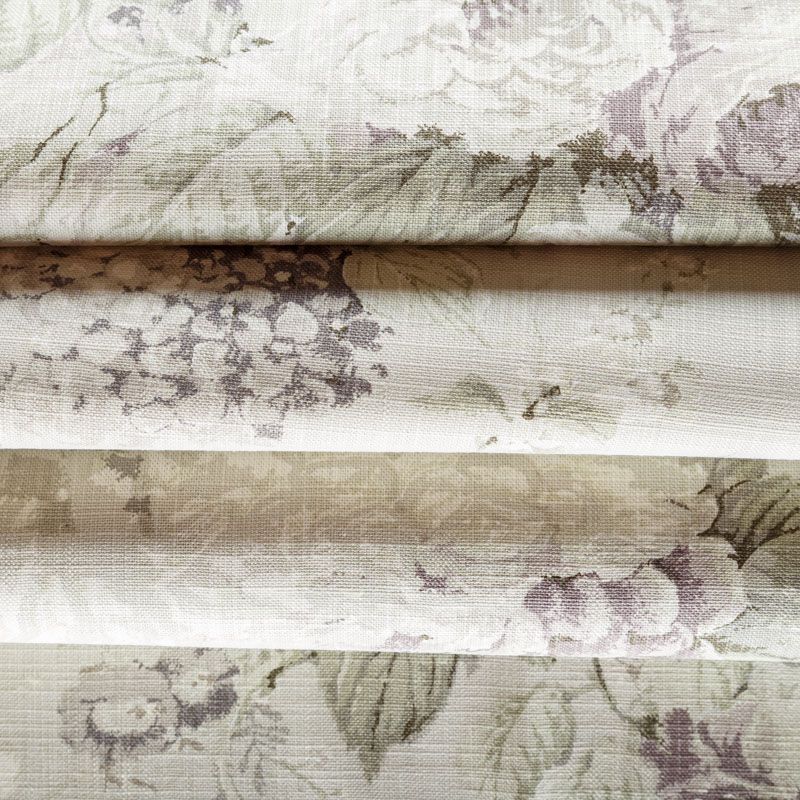 Хлопковая портьерная ткань с растительным принтом в монохромной гамме на светлом сером фоне. Ткань средней плотности, без блеска, хорошо драпируется, имеет полонтяное переплетение. Можно использовать для пошива портьер, римской шторы, салфеток, столового белья, подушек, покрывал и других предметов текстильного интерьера.