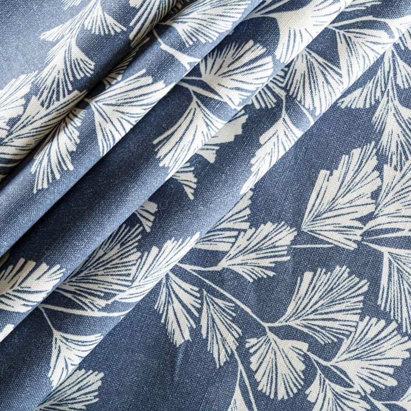 Хлопковая портьерная ткань английского производителя. На синей текстурированной основе наснесен принт в виде изящных веточек в монохромной гамме. Ткань средней плотности, прекрасно держит форму, драпируется в устойчивые складки. Подойдет для классических портьер, римских штор, покрывал, подушек, скатертей, салфеток и других элементов текстильного интерьера как в самостоятельном исполнении, так и качестве компаньона к однотонным варинтам.