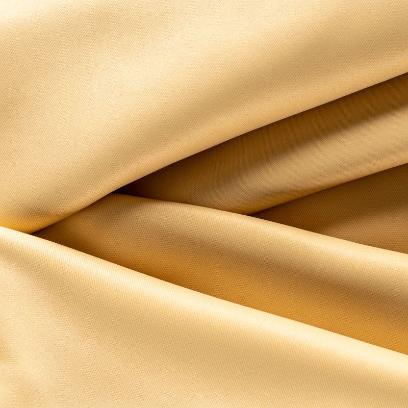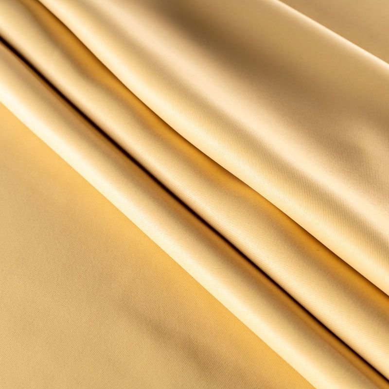 Двухстороняя плотная ткань. Обе стороны гладкие, имеют сатиновый легкий глянец. Ткань хорошо драпируется, укладываясь в крупные ниспадающие пластичные складки и позволяет использовать любые виды крепления для штор – люверсы, ленту, кольца.  Блокирует от 30 до 70 % проникновение света в помещении, не склонна к выгоранию и деформации. Удачно впишется в такие интерьеры, как эко, лофт, модерн в качестве портьер и других элементов текстильного оформления.