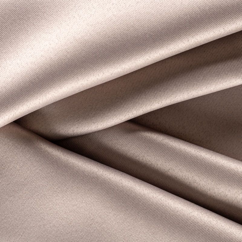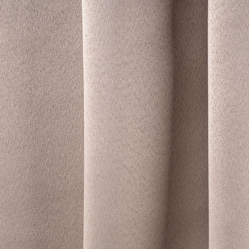 Двухстороняя плотная ткань. Обе стороны гладкие, имеют сатиновый легкий глянец. Ткань хорошо драпируется, укладываясь в крупные ниспадающие пластичные складки и позволяет использовать любые виды крепления для штор – люверсы, ленту, кольца.  Блокирует от 50 до 90 % проникновение света в помещении, не склонна к выгоранию и деформации. Удачно впишется в такие интерьеры, как эко, лофт, модерн в качестве портьер и других элементов текстильного оформления.
