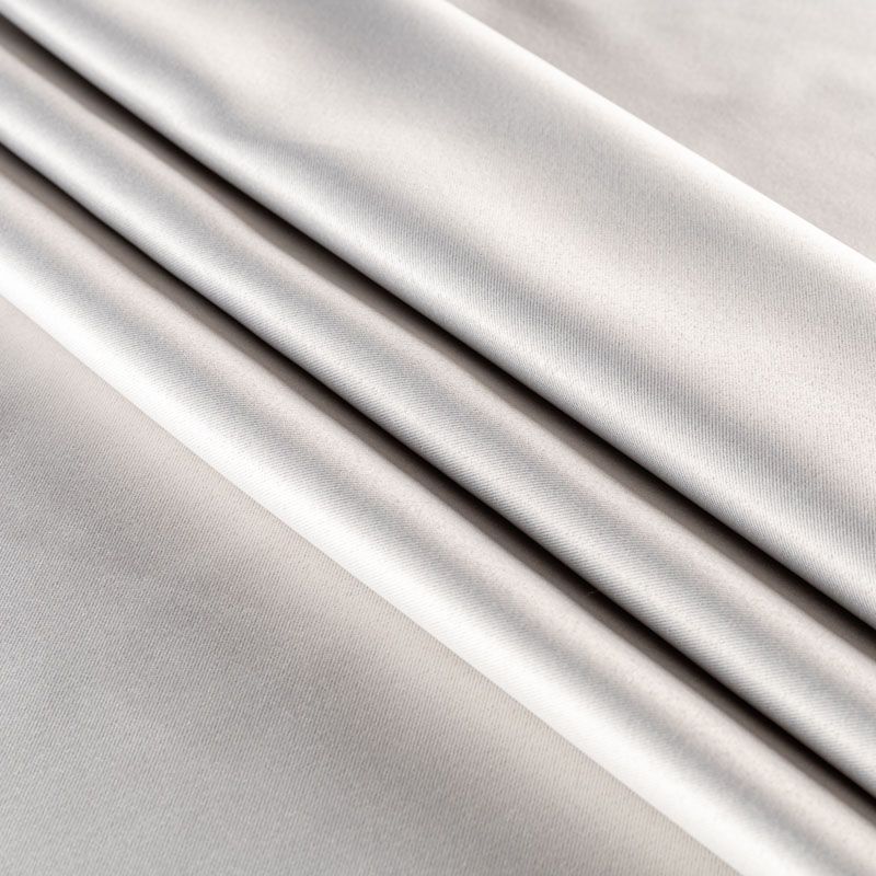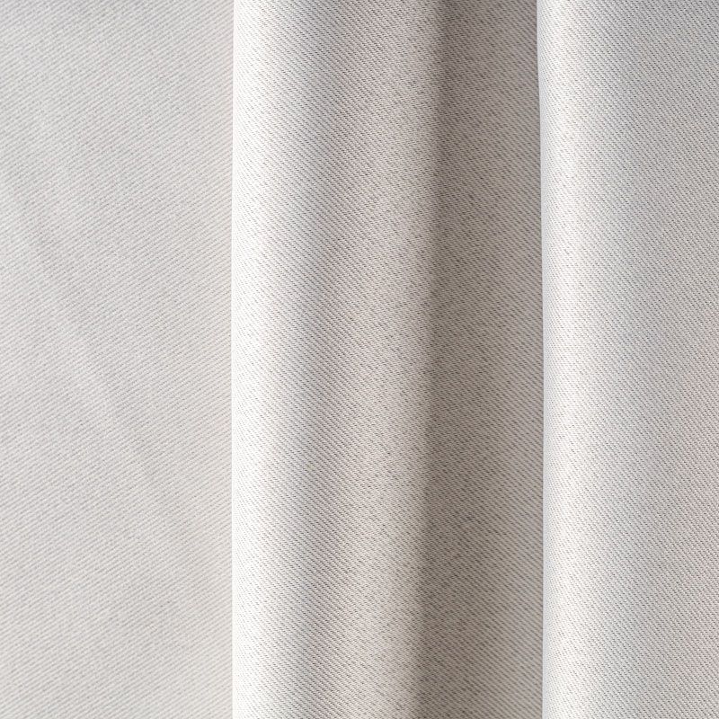 Двухстороняя плотная ткань. Обе стороны гладкие, имеют сатиновый легкий глянец. Ткань хорошо драпируется, укладываясь в крупные ниспадающие пластичные складки и позволяет использовать любые виды крепления для штор – люверсы, ленту, кольца.  Блокирует от 50 до 90 % проникновение света в помещении, не склонна к выгоранию и деформации. Удачно впишется в такие интерьеры, как эко, лофт, модерн в качестве портьер и других элементов текстильного оформления.