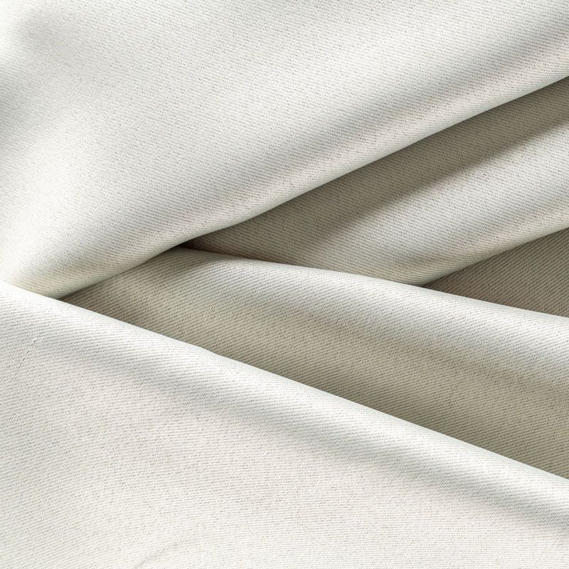 Двухстороняя плотная ткань. Обе стороны гладкие, имеют сатиновый легкий глянец. Ткань хорошо драпируется, укладываясь в крупные ниспадающие пластичные складки и позволяет использовать любые виды крепления для штор – люверсы, ленту, кольца.  Блокирует от 50 до 90 % проникновение света в помещении, не склонна к выгоранию и деформации. Удачно впишется в такие интерьеры, как эко, лофт, модерн в качестве портьер и других элементов текстильного оформления.