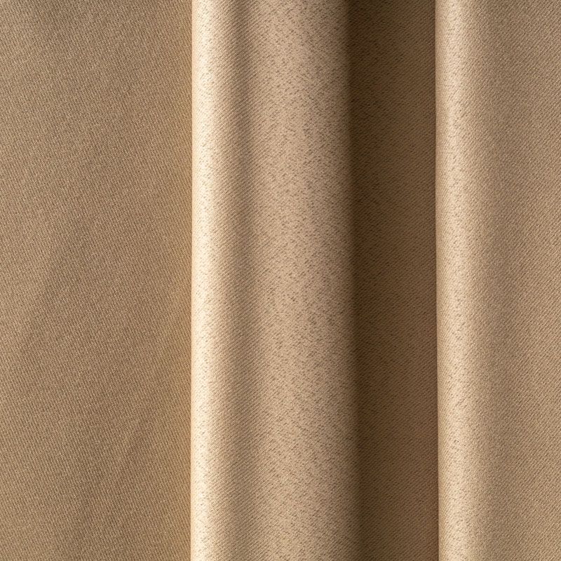 Двухстороняя плотная ткань. Обе стороны гладкие, имеют сатиновый легкий глянец. Ткань хорошо драпируется, укладываясь в крупные ниспадающие пластичные складки и позволяет использовать любые виды крепления для штор – люверсы, ленту, кольца.  Блокирует от 50 до 90 % проникновение света в помещении, не склонна к выгоранию и деформации. Удачно впишется в такие интерьеры, как эко, лофт, модерн в качестве портьер и других элементов текстильного оформления.