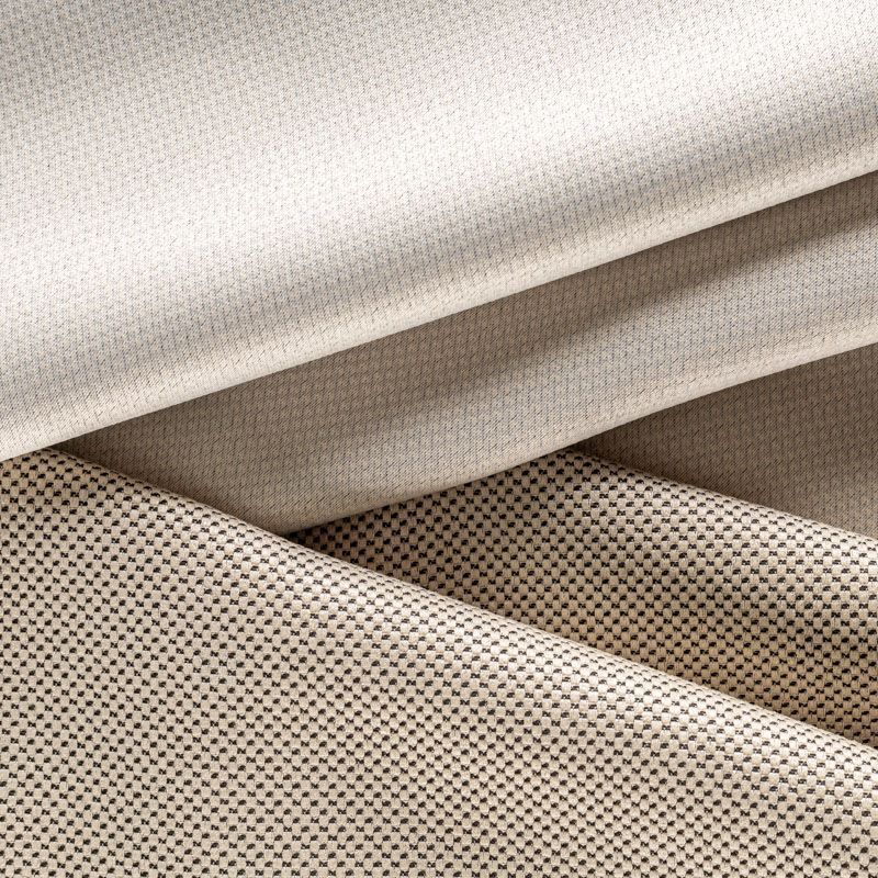 Двухстороняя плотная ткань.Одна сторона - матовая с плетением рогожка,а другая с сатиновым легким глянцем. Хорошо драпируется, укладываясь в крупные ниспадающие пластичные складки и позволяет использовать любые виды крепления для штор – люверсы, ленту, кольца.  Блокирует до 50 % проникновение света в помещении, не склонна к выгоранию и деформации. Удачно впишется в такие интерьеры, как эко, лофт, модерн в качестве портьер и других элементов текстильного оформления.
