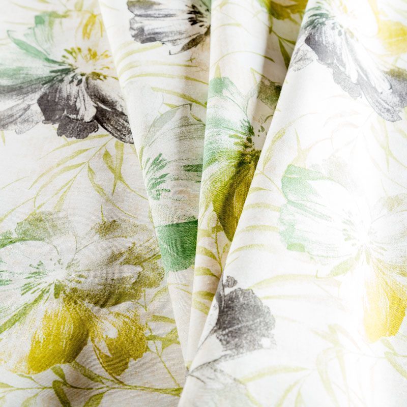 Декоративный смесовый хлопок с флористическим принтом от испанского производителя Visatex. Ткань средней плотности, приятная и гладкая на ощупь. Интересный вариант для пошива штор, декоративных подушек и покрывал, изготовления текстильных элементов в кухнях-столовых, гостинных, спальнях и даже детских.