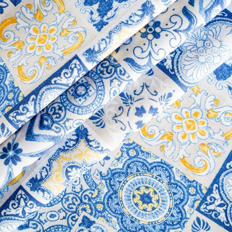 Декоративный смесовый хлопок со стилизованным принтом от испанского производителя Visatex. Ткань средней плотности, приятная и гладкая на ощупь. Интересный вариант для пошива штор, декоративных подушек и покрывал, изготовления текстильных элементов в кухнях-столовых, гостинных, спальнях и даже детских.