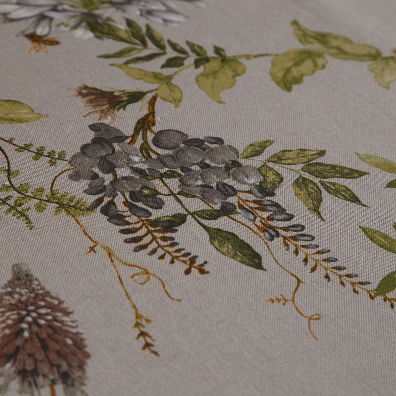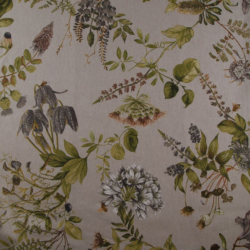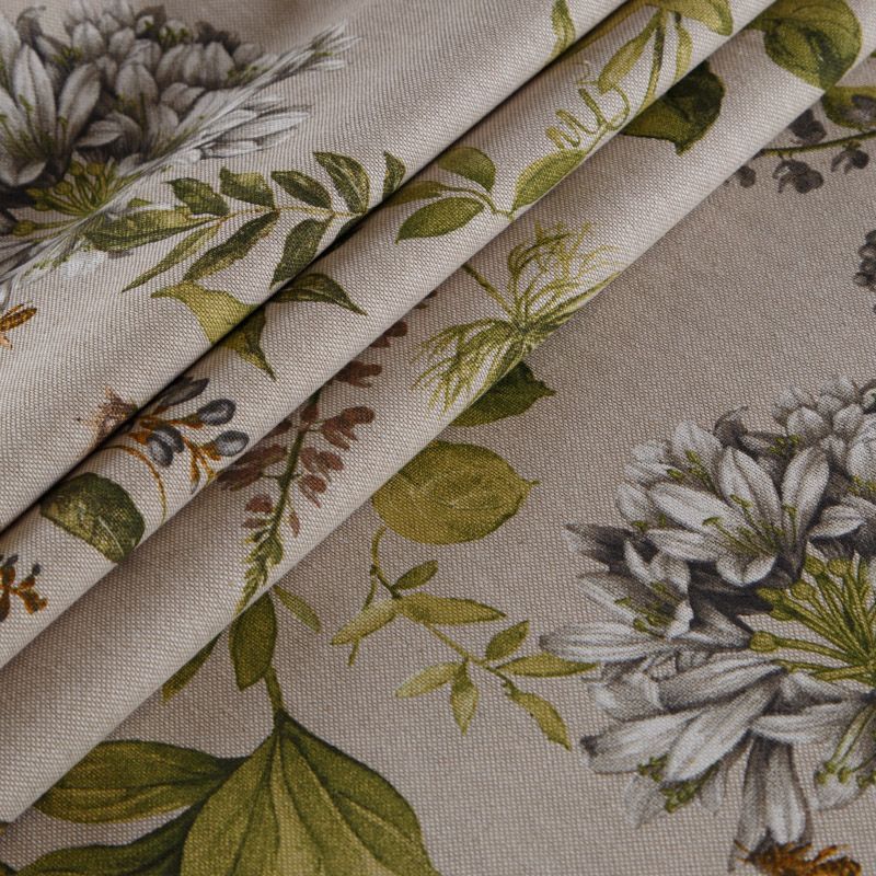 Декоративная портьерная ткань с шикарным натуральным составом и флористическим трендовым принтом от испанского производителя Visatex. Ткань средней плотности, приятная на ощупь, слегка фактурная из-за натуральных вовлокон. Интересный вариант для пошива штор, декоративных подушек и покрывал, изготовления текстильных элементов в кухнях-столовых, гостинных, спальнях и даже детских.