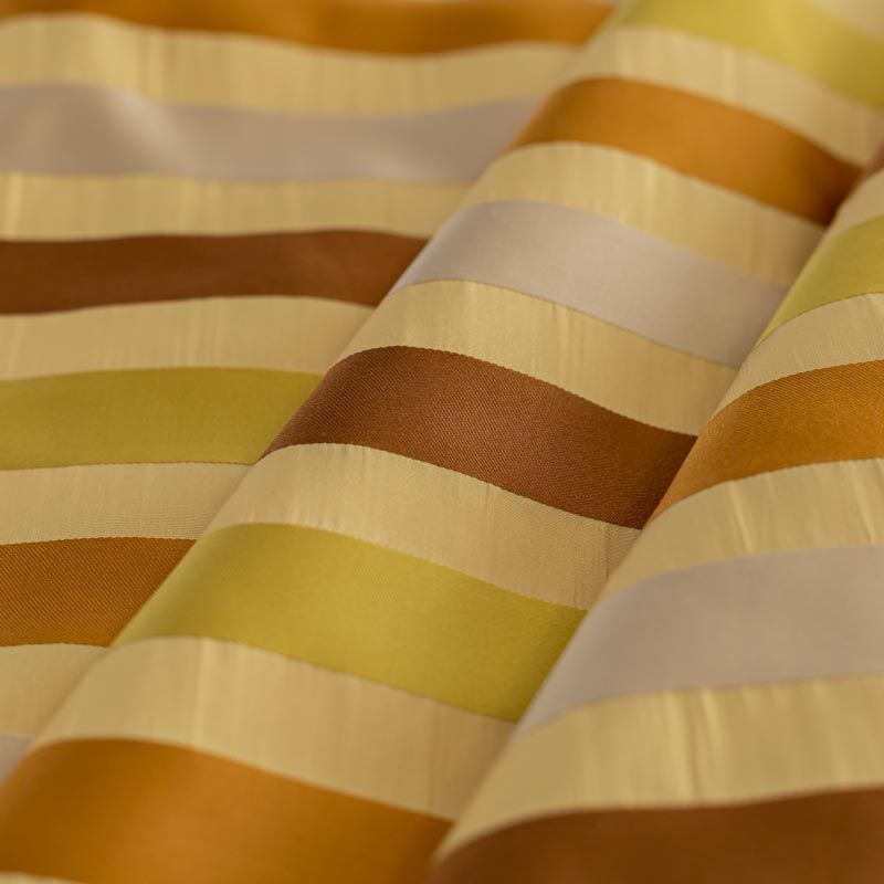 По своей структуре шелковые портьерные ткани являются мягким и красивым материалом, способным отражать свет. Изделия из шелка удивительно переливаются и блестят, придавая интерьеру помещения особую атмосферу и вид. Такие портьерные ткани лучше всего применять для создания покрывал, наволочек, штор, легких, воздушных и светлых – они отлично подойдут для затемненных мест либо закрытых окон. Золотистая шелковая ткань с узкими поперечными полосками прекрасно подойдет для небольшого помещения. Такой принт визуально расширит пространство.