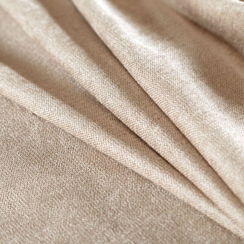 Плотная портьерно-обивочная ткань с бархатистой фактурой имеет очень элегантный внешний вид, красиво переливается на  солнце.  Благодаря переплетению обычного и пушистого волокна и добавлению синтетики, ткань не растягивается и не мнется, не образует катышков, не выгорает под солнцем. Нейтральные цвета коллекции прекрасно подойдут для обивки мебели, пошива добротных штор, подушек, покрывала.