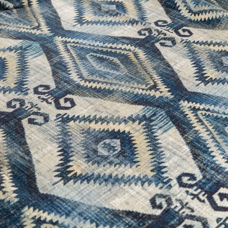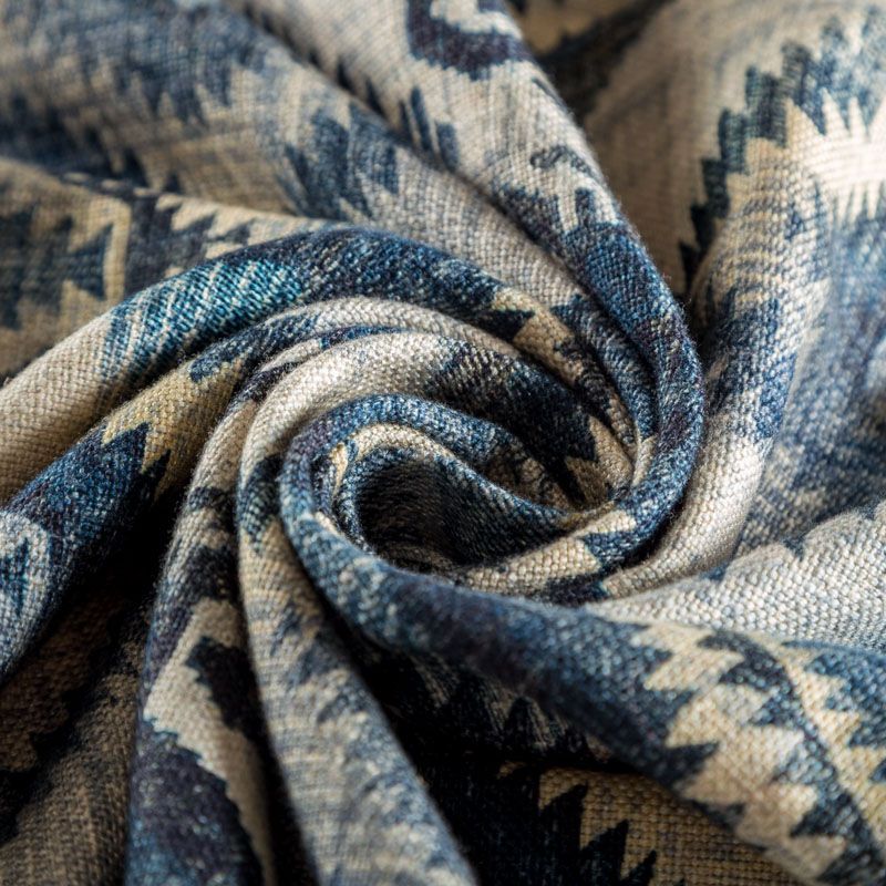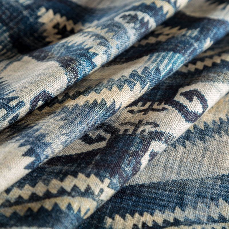 Натуральная ткань из коллекции Санта Круз известного бренда Fryett's с самобытным этническим диайном на текстурированной хлопковой основе. Ткань средней плотности, прекрасно держит форму, драпируется в устойчивые складки. Подойдет для плотных штор, покрывал, подушек, скатертей, салфеток и других элементов текстильного интерьера.