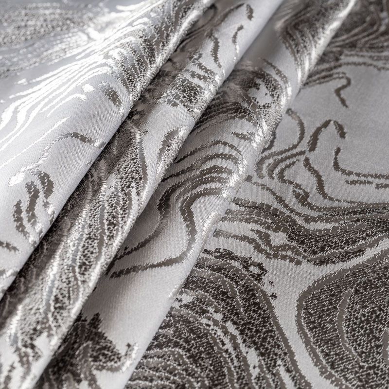 Интересная жаккардовая ткань с модным абстрактным дизайном, имитирующим срез камня, прекрасно подойдет для стильного современного интерьера. Ткань средней плотности, мягкая, хорошо драпируется и держит форму. Подойдет в качестве штор для гостиной, спальни, также можно использовать для пошива покрывала, декоративных чехлов, подушек, римской шторы.