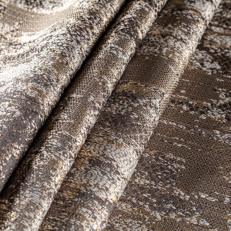 Интересная жаккардовая ткань с модным абстрактным дизайном, имитирующим патинированную штукатурку, прекрасно подойдет для стильного современного интерьера. Ткань средней плотности, поверхность фактурная, мягкая, хорошо драпируется и держит форму. Подойдет в качестве штор для гостиной, спальни, кабинета, также можно использовать для пошива покрывала, декоративных чехлов, подушек, римской шторы.