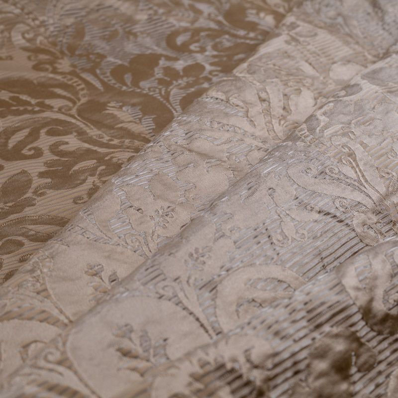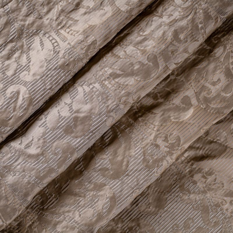 Портьерная жаккардовая ткань с классическим рисунком. Эффект старения, благородные тона и изящная блестящая полоска выглядит сдержанно и изысканно. Идеально подходит к винтажным интерьерам, классическому кабинету, шикарной гостиной в виде портьер, а также используется для декоративных элементов.
