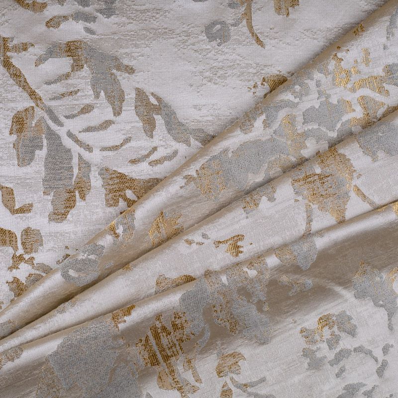 Итальянская жаккардовая портьерная ткань в благородной цветовой гамме с цветочно-растительным орнаментом. Ткань хорошо драпируется.  За счет сочетания шелковых и льняных нитей рисунок как будто вытравлен на поверхности ткани. Подходит для пошива штор, ламбрекенов, покрывал, наволочек, чехлов на мебель и других элементов декора для стилизованных классических интерьеров.