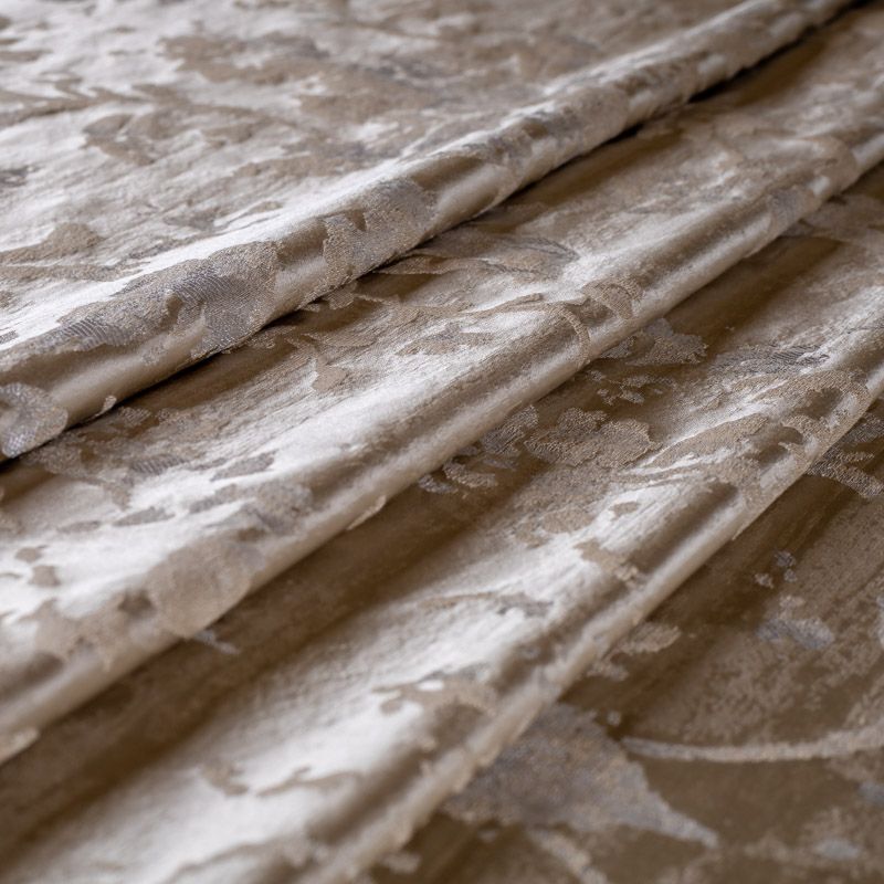 Итальянская жаккардовая портьерная ткань в благородной цветовой гамме с цветочно-растительным орнаментом. Ткань хорошо драпируется.  За счет сочетания шелковых и льняных нитей рисунок как будто вытравлен на поверхности ткани. Подходит для пошива штор, ламбрекенов, покрывал, наволочек, чехлов на мебель и других элементов декора для стилизованных классических интерьеров.