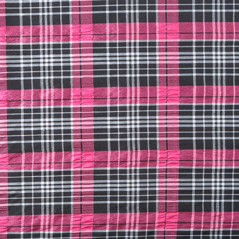 Легкая плательно-рубашечная ткань в яркую клетку. Материал мягкий, тонкий, непрозрачный, пластичный и приятный к телу, хорошо драпируется, имеет фактурную жатую поверхность. Прекрасно подойдет как для пошива рубашек, платья-рубашки, сарафана, туники, топа, летнего костюма.