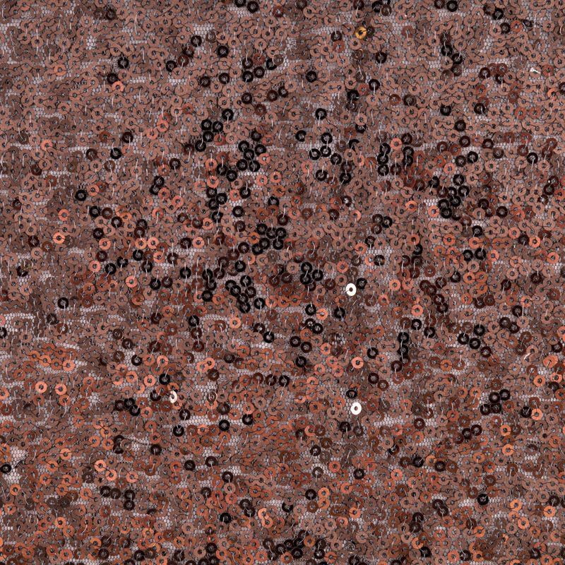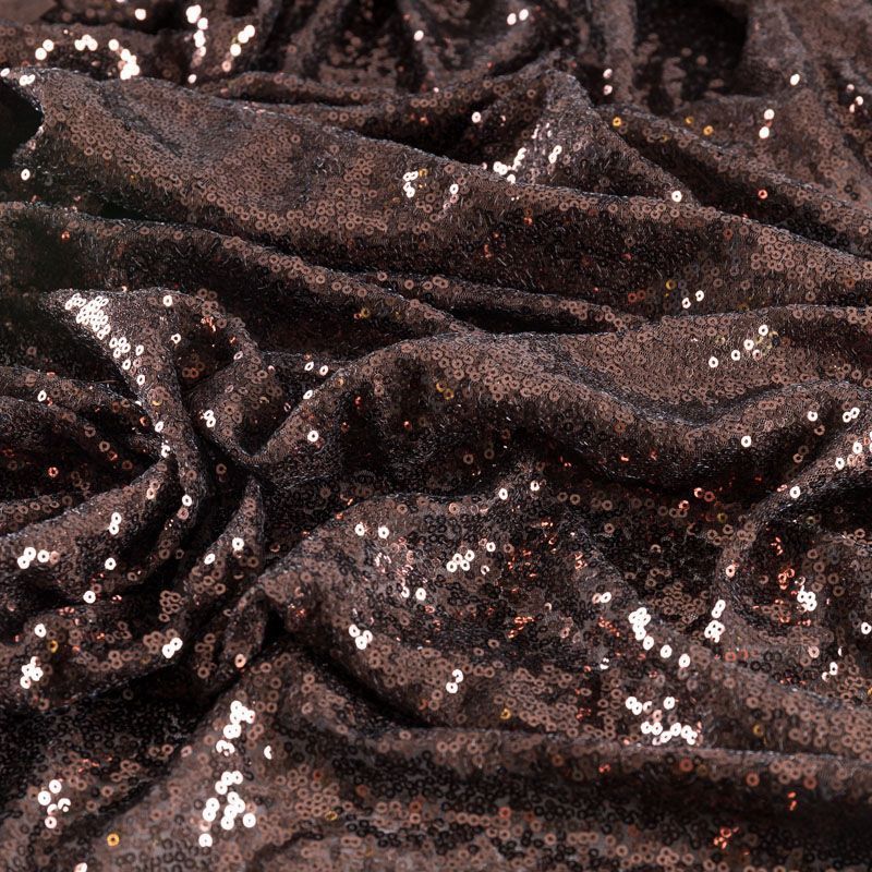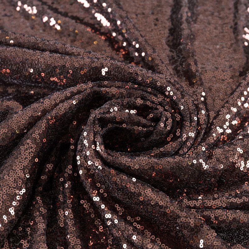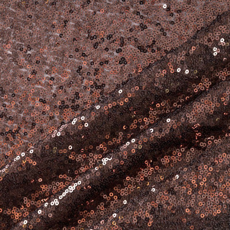 Блестящие пайетки шоколадного оттенка. Мелкие, размером около 3 мм. Основа - трикотажное полотно, комфортное в носке. Ткань не прозрачная, тянется.  Подойдет для вечернего коктельного платья или юбки, комбинезона, топа, танцевальных и сценических костюмов.