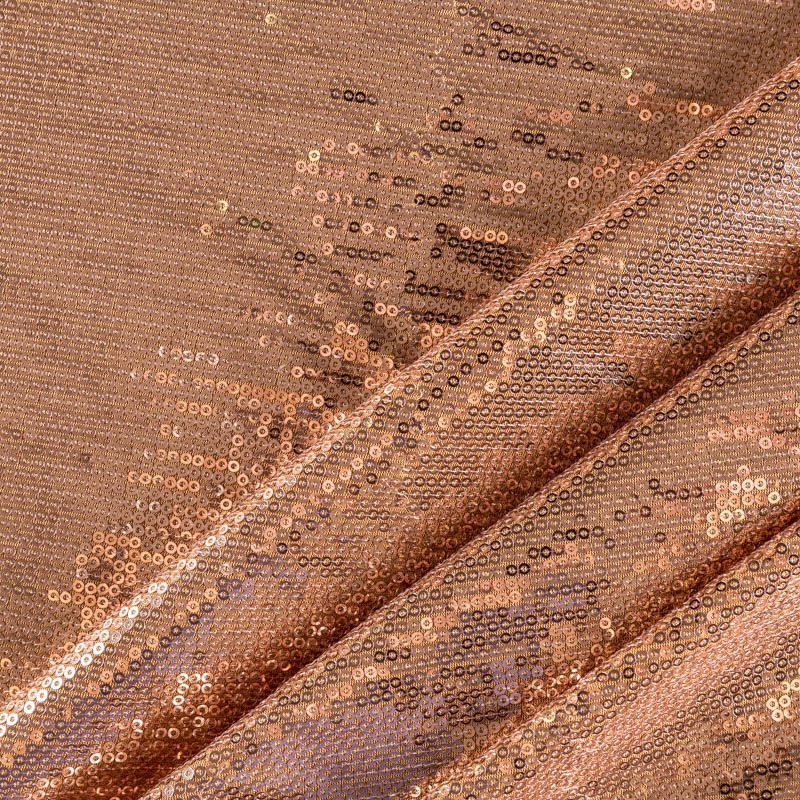 Блестящие пайетки бронзового оттенка. Мелкие, размером около 3 мм. Основа - трикотажное полотно, комфортное в носке. Ткань не прозрачная, тянется.  Подойдет для вечернего коктельного платья или юбки, комбинезона, топа, танцевальных и сценических костюмов.
