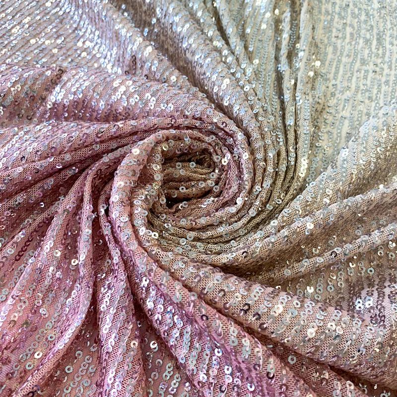 Невероятные пайетки на тонкой сетке с роскошным мерцанием мелких блесток с переходом цвета. Ткань очень хорошо драпируется, красиво переливается, имеет глянцевый блеск, пластичная и эластичная и в длину, и в ширину. Градиент расположен в направлении от кромки к кромке. Набирается объемом. Это может быть нарядное платье, Пайетки — идеальный материал для праздников и вечеринок. Из них получится эффектное платье, жакет, боди, туника, юбка или комбинезон.