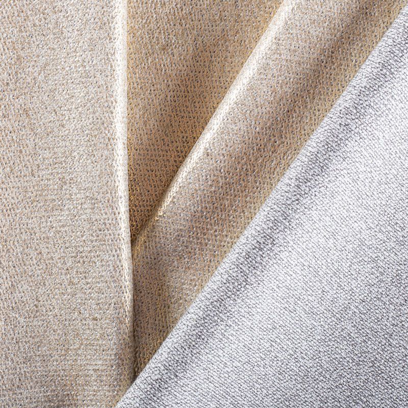 Двухслойный двусторонний итальянский хлопковый трикотаж костюмно-пальтовой плотности. Цвет одной стороны - серый меланж, вторая сторона - золотистая. Материал мягкий, пластичный, хорошо тянется, не просвечивает. Прекрасно подойдет для пошива кардиганов, пальто, пончо, юбок и платьев в спортивном стиле.