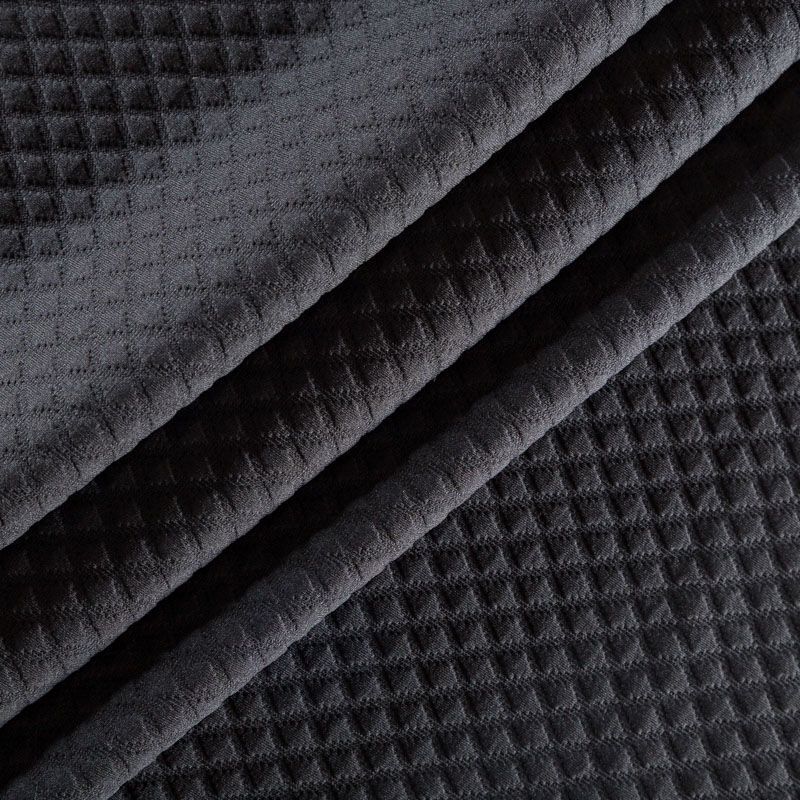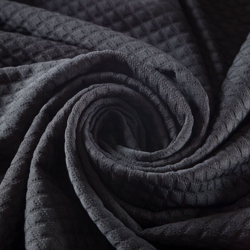 Плотное трикотажное полотно с имитацией стежки. Поверхность ткани объемная, мягкая, приятная на ощупь. Трикотаж не просвечивается, хорошо тянется за счет эластана в составе, держит форму. Прекрасно подойдет для пошива легких пальто, курток, бомберов, кардиганов, платьев, юбок, шорт.