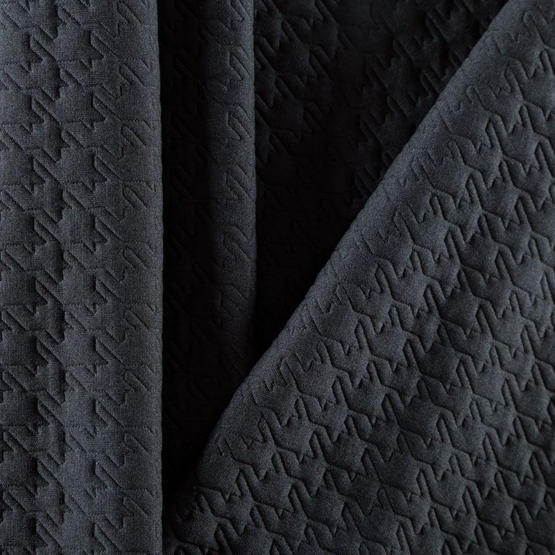 Плотное трикотажное полотно с имитацией стежки. Поверхность ткани объемная, мягкая, приятная на ощупь. Трикотаж не просвечивается, хорошо тянется за счет эластана в составе, держит форму. Прекрасно подойдет для пошива легких пальто, курток, бомберов, кардиганов, платьев, юбок, шорт.