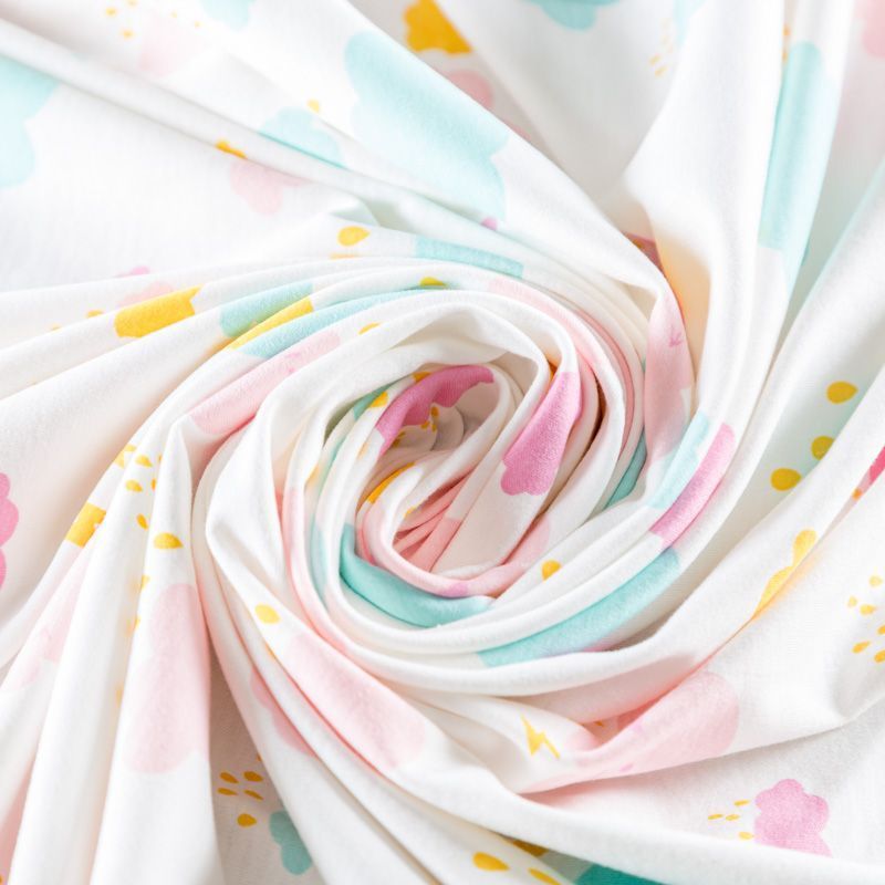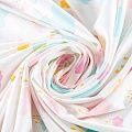 Приятный на ощупь, гладкий хлопковый трикотаж-кулирка с эластаном, средней плотности с веселым детским принтом. Подойдет для пошива нижнего белья, изделий для детей, а также для спортивной и домашней одежды, пижамы.