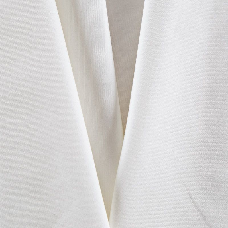 Трикотажное полотно средней плотности с хорошим смесовым составом. Материал очень мягкий, пластичный, тянется за счет эластана в составе. Поверхность гладкая, матовая, не просвечивает. Отлично подойдет для пошива изделий свободных и прилегающих силуэтов: платьев, лонгсливов, футболок, спортивной одежды. Трикотаж почти не мнется, очень прочный на разрыв.