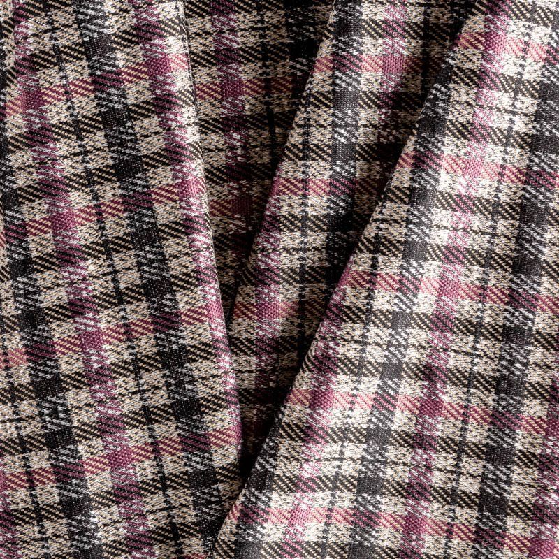 Плотный вязаный трикотаж с вискозой. Сочетание линий черного, серого и террактового оттенков образует сложную красивую клетку.    Материал мягкий, пластичный, хорошо тянется, практически не просвечивает и отлично подходит для изготовления платья, юбки, жакета или кардигана.