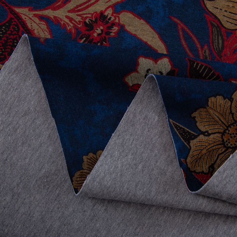 Трикотаж двухсторонний 056-19654 темно-синий принтованный в Уфе