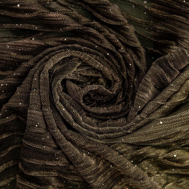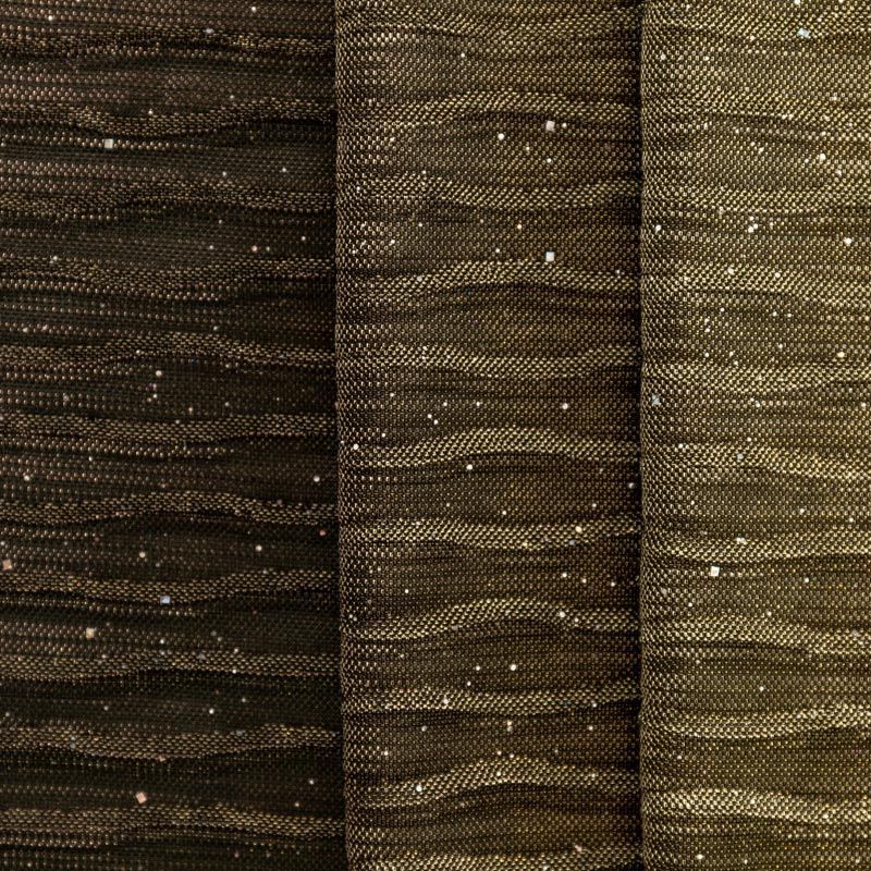 Сложнейшее переплетение люрексовой и металлизированной нити, а также волнообразное гофре создают впечатление живой ткани, которая меняет свой цвет при каждом движении и направлении преломления света. Ткань тонкая, легкая, подойдет для пошива платья, юбки на подкладе, туники, блузы, топа. Градиент расположен в направлении от кромки к кромке. Набирается объемом.
