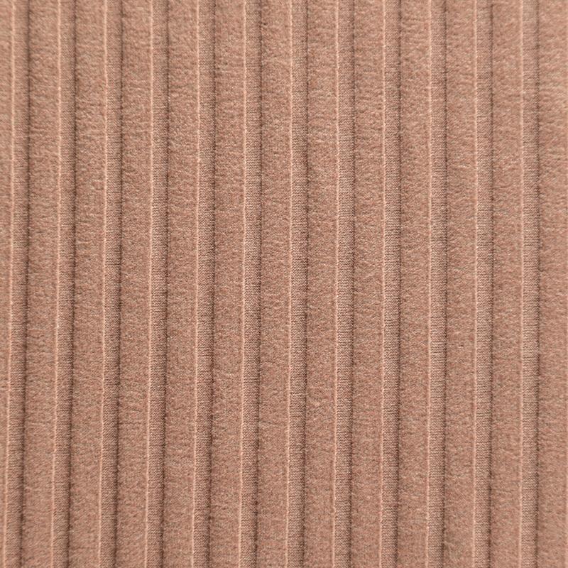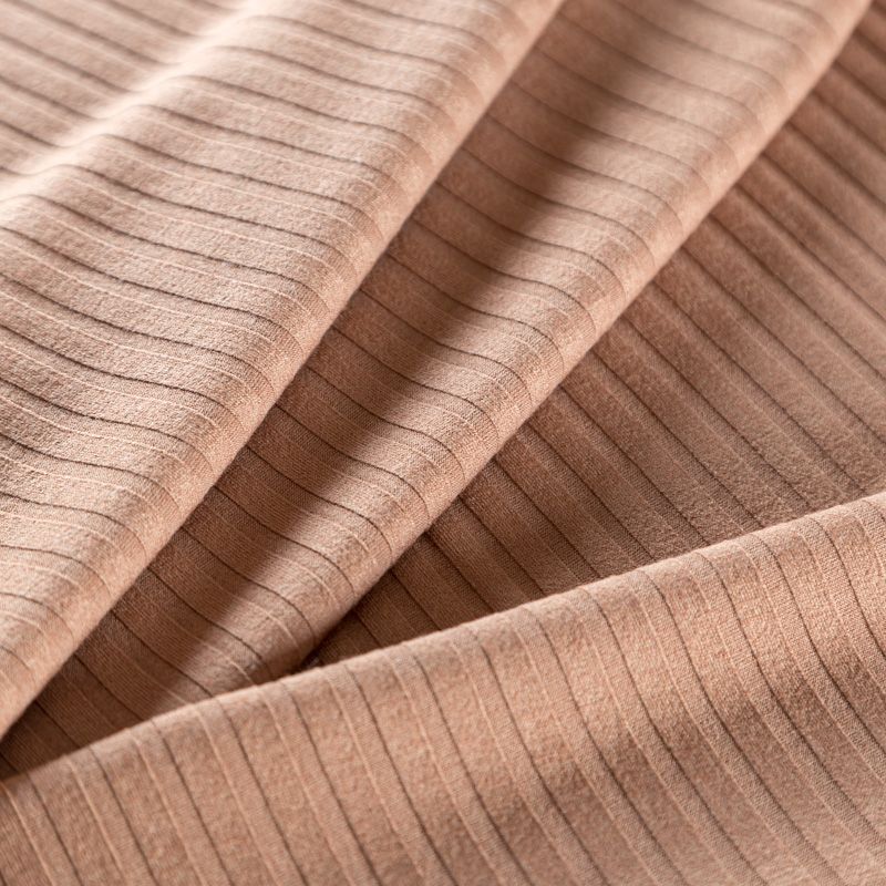 Трикотаж-лапша средней плотности, с высокой степенью эластичности, поверхность рельефная за счет эффекта резинки. С изнанки трикотаж гладкий, комфортный, подходит для использования без подклада. Сшить из такого полотна можно топы, лонгсливы, водолазки, платья,  юбки, брючные комплекты. Направление полос - вдоль линии кромки.