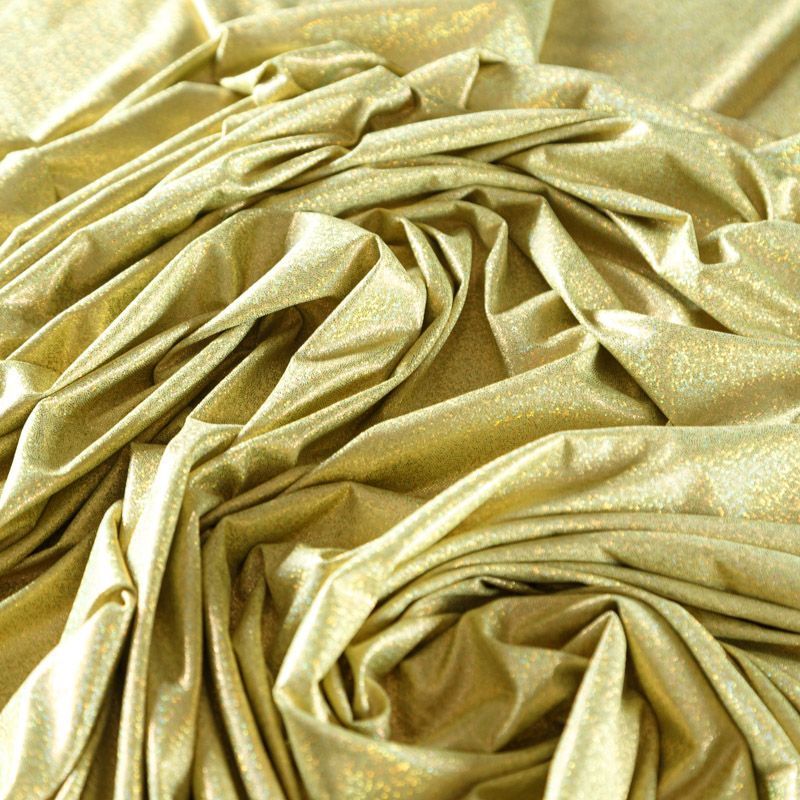 Эффектное трикотажное полотно с напыленными разноцветными блестками. Материал очень пластичный, образует струящиеся мягкие складки, отлично тянется, не просвечивает, не мнется. Изнаночная сторона матовая, приятная на ощупь. Идеальный выбор для нарядных моделей, гимнастических и танцевальных костюмов.