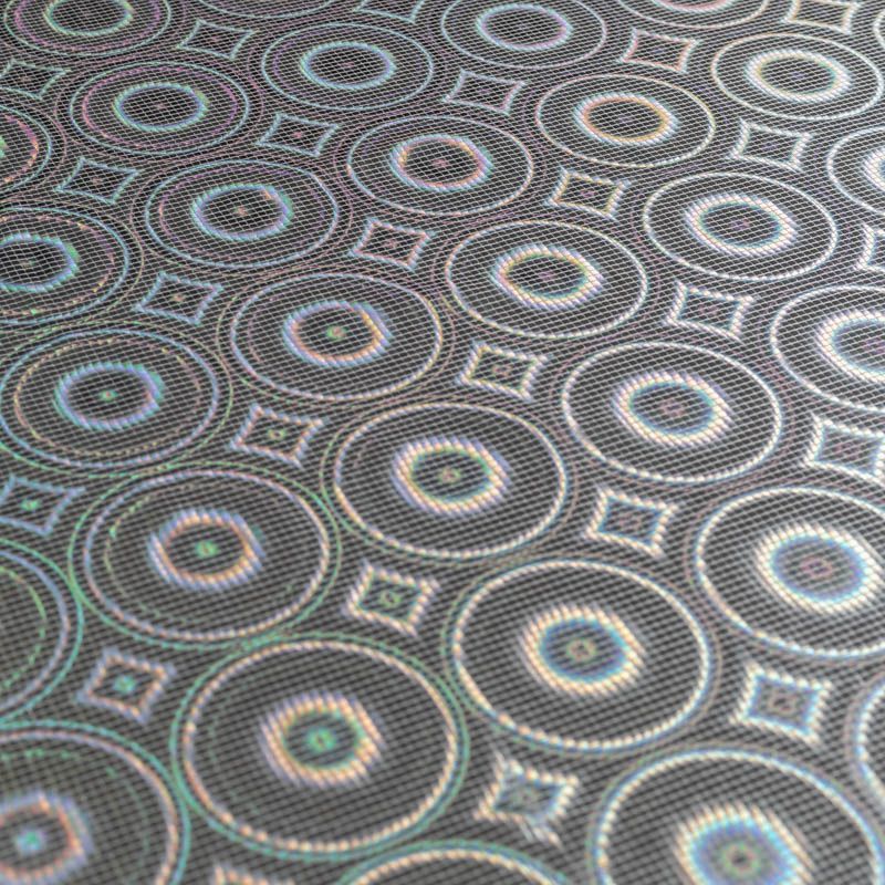Эффектное трикотажное полотно с напыленными разноцветными блестками. Поверхность фактурная с геометрическим рисунком, который не деформируется при растяжении трикотажа. Материал очень пластичный, образует струящиеся мягкие складки, отлично тянется, не просвечивает, не мнется. Изнаночная сторона матовая, приятная на ощупь. Идеальный выбор для нарядных моделей, гимнастических и танцевальных костюмов.